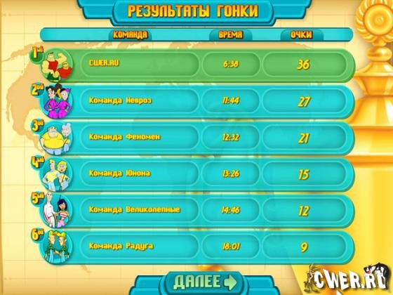 Лучшие команды со всего мира отправляются в захватывающую кругосветную гонку. Их ждет непростое испытание, ведь в каждой из множества локаций необходимо отыскать нужные предметы. Обогнать соперников и прийти к финишу первым – вот задание, выполнить которое по силам лишь самым внимательным игрокам! Возглавьте соревнование, оставьте далеко позади всех соперников в чемпионате. Попробуйте силы в одиночных миссиях по различным странам. Вооружитесь лупой и компасом, устраивайте ловушки и избегайте коварных подстав со стороны конкурентов. Эта игра позволит отдохнуть от всех домашних хлопот и соберет у монитора всю семью!