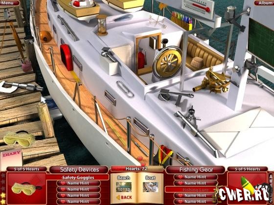Бетка где-то на полчаса, примерно 5 коротких уровней, состоящих из 2 локаций. Предметы (10 на локацию) заданы общим описанием ( напитки, десерты, фрукты и т.д.) и разбиты в группы по 5 штук. Интересная подсказка. Она дается в 3 этапа: название предмета, затем очертание, если не поможет, то конкретное изображение. За прохождение каждого уровня даются очки и призы (время, не использование подсказок, точность попадания и т.д.). В одной из локаций нужно было найти сначала первый предмет, только после этого, открывались все остальные. Мини-игр не обнаружено.