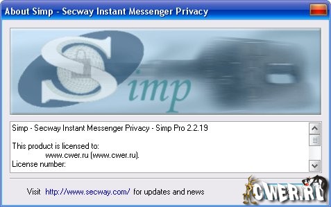 Secway SimpPro - программа, которая позволяет осуществлять надежное шифрование сообщений и файлов перед их передачей через различные IM-сети, а так же аутентификацию Ваших собеседников по их открытым ключам. Поддерживается шифрование сообщений в сетях MSN Messenger, AIM, ICQ, Yahoo! и зашифрованная передача файлов в MSN Messenger и ICQ. Для шифрования самих сообщений и файлов используются симметричные шифры AES, 3DES, CAST и Twofish c длиной ключа 128 бит. Для безопасной передачи симметричного ключа шифруемой сессии и аутентификации собеседников используются ассимметричные шифры RSA 2048-4096 bit, ElGamal/DSA 1024/2048 bit, Elliptic curve over GF(p) 256/521 bit.