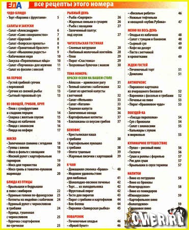 В журнале представлены рецепты и наваристых супчиков, и мясных и рыбных деликатесов, и ароматной выпечки, и многих-многих других блюд. Ну а тема этого номера: КРАСКИ ОСЕНИ НА ВАШЕМ СТОЛЕ - и здесь вы найдёте подборку вкуснейших овощных блюд.
