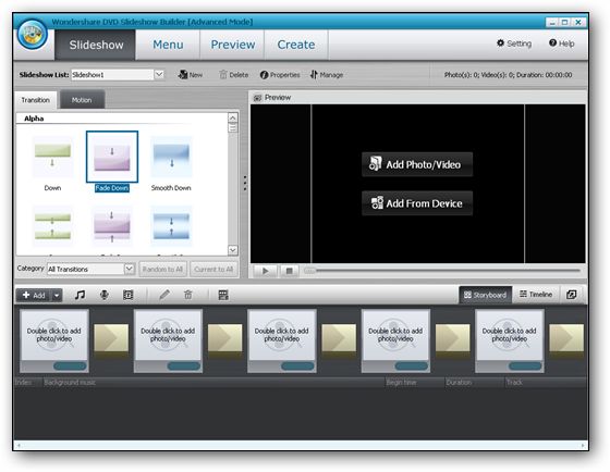 Wondershare DVD Slideshow Builder - простой, лаконичный инструмент для создания и просмотра домашнего видео, создания слайд-шоу из ваших цифровых фотографий для последующего просмотра получившегося результата по телевизору. Программа позволит Вам создавать Flash слайд-шоу (Flash for Видео), идеально подходящие для размещения на Вашем веб-сайте; генерировать MPEG видео файлы для мобильных устройств, таких как Apple iPod, Sony PSP, сотовый телефон; создавать видео слайд-шоу фотографий, готовые к загрузке на YouTube, MySpace. При помощи нескольких щелчков, программа создает потрясающие слайд-шоу фотографий с музыкальным сопровождением, CD или DVD меню, с эффектами перехода.