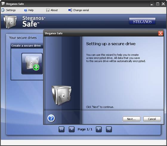 Steganos Safe 2009 - программа, предназначенная для шифровки данных, которая может содержать громадное количество конфиденциальной информации. Вы можете создавать любое количество защищенных дисков объемом до 256 Гб каждый. В программе Steganos Safe Professional используется AES, один из самых современных мировых алгоритмов шифрования с кодами длиной 256 бит. Как и многие шифровки Steganos, он ни разу не был взломан.