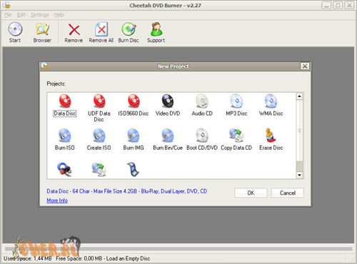 Cheetah DVD Burner - программа для записи DVD+R/W, DVD+R, DVD-R, DVD-R/W, и DVD-RAM, а так же CDR и CD-R/W в формате ISO. Кроме того, программка поддерживает не только Data запись, но и ещё и аудио.