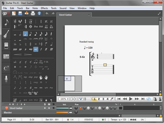 Guitar Pro - популярнейший табулатурный редактор от французских разработчиков! Настраиваемый режим отображения нот и табулатур с масштабированием, широкие возможности для печати и экспорта, расширенный набор приемов гитарной артикуляции и техник с более точной их имитацей, обозначения для лучшего нотного редактирования, и многое другое. Но самое главное! - совершенно новое звучание, предоставляемое собственной технологией RSE (Realistic Sound Engine) и встроенными программными процессорами эффектов. С установленным набором звуковых банков RSE, неискушенный слушатель не отличит звучания Guitar Pro 6 от живых инструментов! На данный момент RSE включает в себя банки для семи разновидностей гитар, бас-гитары и ударных - имеется поддержка разнообразных эффектов, включая Wah-wah.