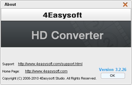 4Eeasysoft HD Converter является простым, легким HD-видео конвертером для преобразования HHD DV, HD TS, MTS, M2TS, HD MOV, HD H.264, HD RM и другие HD видео форматы. 4Eeasysoft HD Converter также помогает Вам конвертировать HD-видео в такие форматы, как AVI, WMV, 3GP, MP4, FLV, SWF, ASF и т.д.