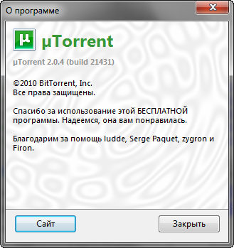 Скачать программу µTorrent 2.0.4 Build 21431 Stable (0,9 МБ):