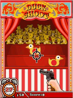 Уважаемая публика! Принимайте участие в карнавальных играх на мобиле! Поразите дам своей силой, поборов клоуна Бонзо руками! Поразите всех меткостью в утиной охоте! На твоем карнавале все найдут много веселья и незабываемые впечатления! Размеры экранов: 240x320.