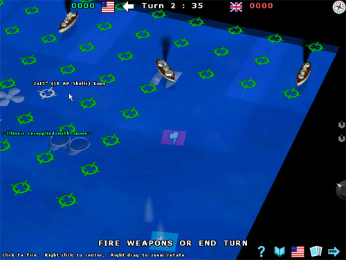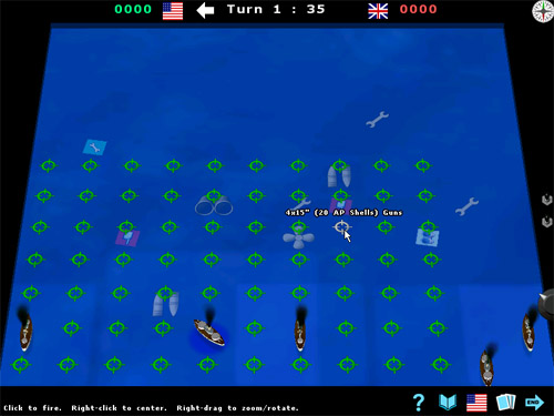 Классическая игра, «Морской бой», выросла! Теперь корабли движутся, подводные лодки погружаются, а минные тральщики обнаруживают мины. Простая система усовершенствований позволяет вам улучшать ваши корабли по ходу игры. Выберите один из пяти периодов морской истории и проведите один бой или целую военную кампанию. Вся графика объемная, живописно анимирована. Можно играть одному или вдвоем.
