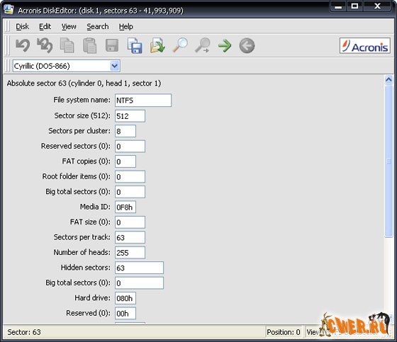 Acronis Disk Editor предоставляет возможность редактировать содержимое секторов жесткого диска, представляя его в наиболее удобном виде, обладает простыми и эффективными средствами навигации по диску и поиска, сохранения содержимого секторов в файле и чтения из файла.