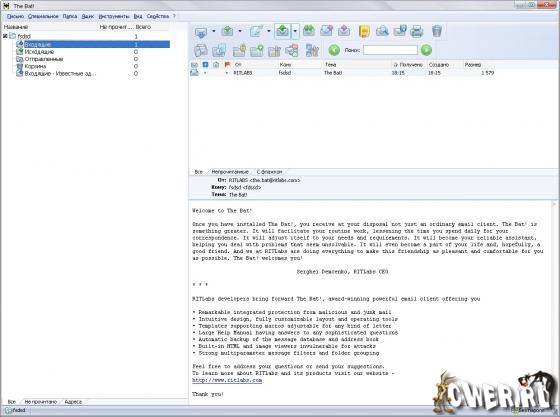 Компания RITLabs выпустила обновление своего почтового клиента The Bat! до версии 4.1.7, содержащее ряд нововведений и исправлений. The Bat! – общепризнанная система обработки электронных сообщений, которая прекрасно совмещает в себе все качества, необходимые опытному пользователю. Интуитивный интерфейс позволяет пользователям The Bat! приступить к работе сразу после установки. Эффективный механизм фильтрации и сортировки помогает обрабатывать огромные потоки входящей почты, с которыми не справляются другие программы. Системные администраторы по достоинству оценят возможность установки в пакетном режиме, которая позволяет лично контролировать процесс инсталляции The Bat!. Все эти функции, наряду с полностью настраиваемыми инструментами автоматической обработки, избавляют пользователей от рутинной работы. Кроме того, The Bat! полностью совместим с Windows Vista и идеально взаимодействует с различными механизмами этой операционной системы.