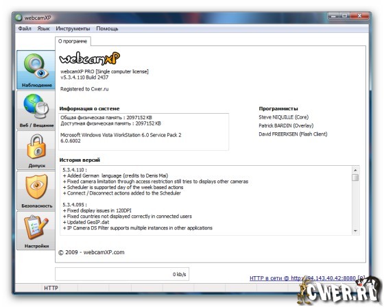 Скачать WebcamXP Pro 5.3.4.110 Build 2437 (5 МБ):