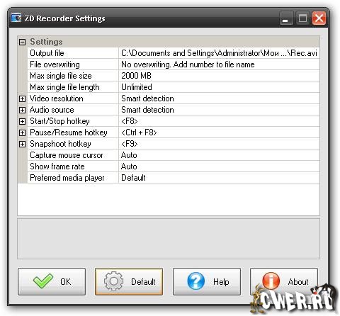 ZD Recorder - уникальная программа для записи всего, что происходит на вашем экране, включая приложения на рабочем столе, компьютерные игры, различные видео источники такие, как потоковое видео, флэш ролики, вебкамера, DVD и другие. Кроме того программа также позволяет записывать аудио из колонок или микрофона одновременно. С помощью этой программы вы сможете создавать демонстрационные или обучающие ролики, делать видеоролики вашего геймплея в какой-либо компьютерной игре, записывать интересное видео на жесткий диск для последующего просмотра. Программа имеет небольшой размер и проста в использовании.