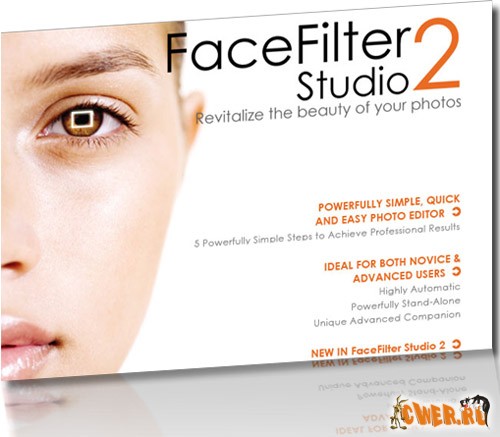 FaceFilter Studio - простой и быстрый редактор цифровых фотографий, специализирующийся на обработке портретов. Программа позволяет менять черты и мимику лица и является своего рода инструментом для виртуального макияжа и виртуальной косметической хирургии. Можно сделать из мрачного субъекта необыкновенно развесёлого человека, создать совершенно безупречное модельное лицо или просто подшутить над знакомыми, придав им облик Квазимодо, например. FaceFilter содержит огромную базу данных портретов, по которым выводит формулу привлекательного лица. Программа сделает так, что на фотографии человек выглядит моложе, умнее, добрее и т.д. Также позволяет пользователям корректировать изображения, в частности, неправильное освещение, эффект красных глаз, неверное соотношение цветов на фото или неудачно пойманное выражение лица.