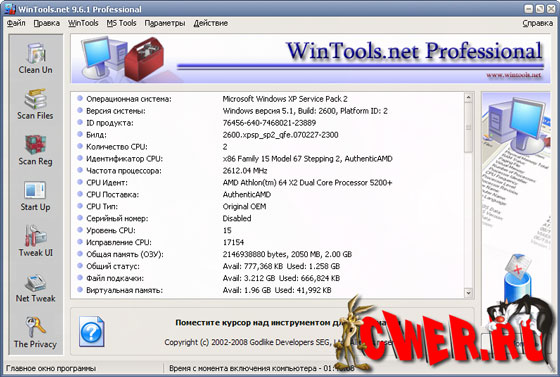 WinTools.net Ultimate – набор инструментов для оптимизации операционной системы Windows. В состав программы входят компоненты для полного удаления нежелательных программ и «мертвых» ссылок реестра, а также для контроля процессов, настройки системы, интернет-соединений и интерфейса. Кроме того, имеются утилиты для надежного хранения конфиденциальной информации. Работает на платформах Windows 2000, 2003, XP и Vista.