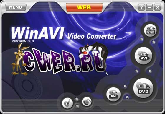 WinAVI Video Converter – мощная и простая в использовании утилита, которая позволяет с легкостью конвертировать видео файлы из одного формата в другой (включая, AVI, MPEG1/2/4, VCD/SVCD/DVD, DivX, XVid, ASF, WMV, RM, QuickTime MOV, Flash SWF). Имеется опция записи VCD/SVCD/DVD дисков. Благодаря усовершенствованному движку компрессия/декомпрессия AVI на DVD происходит менее чем за 1 час.