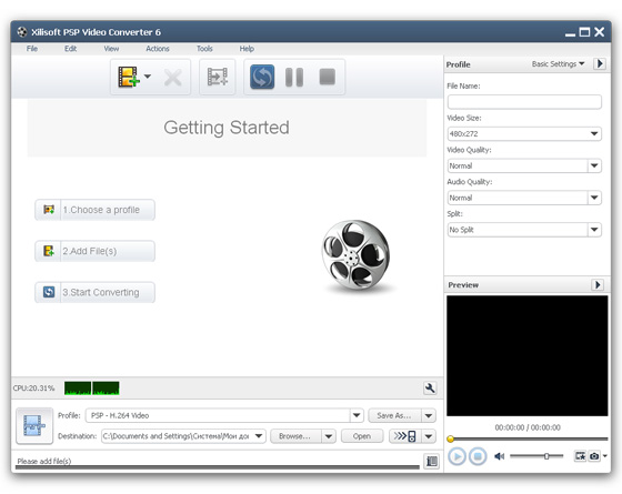 Xilisoft PSP Video Converter - поможет конвертировать ваши видео-файлы в форматы PSP, AVC, H.264, а также в формат PS3 Video MPEG-4 (480p, 720p, 1080i). Поддерживается конвертирование всех популярных видео-форматов, таких как DVD, VCD, SVCD, MOV, RM, MPEG, WMV, 3GP, AVI. Все процессы конвертирования очень легки, быстры, позволяют добиться превосходного качества. В дополнение к этому Xilisoft PSP Video Converter может конвертировать все популярные аудио-форматы (WMA, AAC, M4A, AC3, OGG и др.) в PSP MP3.
