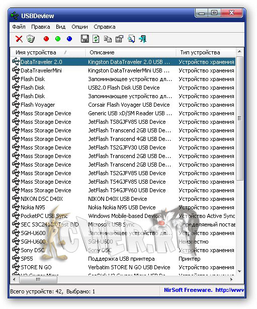 USBDeview - отображает список когда-либо подключавшихся к USB портам компьютера устройств (флеш-карта, мобильный телефон, принтер и т.д. и т.п.), при этом выводятся данные о времени последнего подключения, описания устройств, их серийные номера, VendorID и т.д. Полученную информацию можно экспортировать в файл форматов Text/HTML/XML.