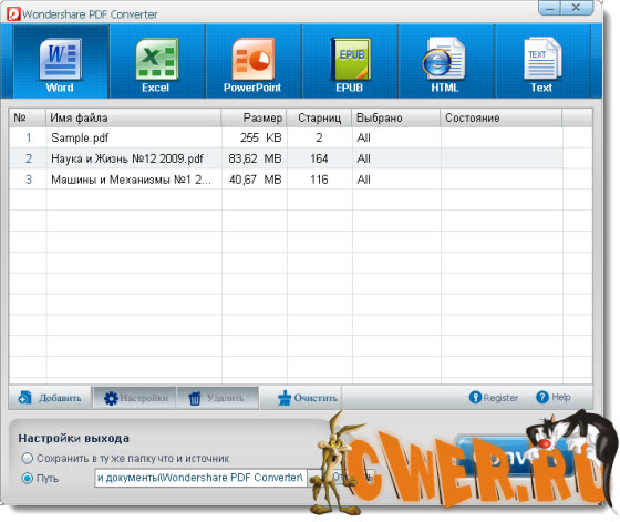 Wondershare PDF Converter - профессиональное решение для конвертации PDF файлов в Microsoft Word, Microsoft Excel, Microsoft PowerPoint, HTML, EPUB и текстовые документы. Просто с помощью нескольких кликов, Вы сможете конвертировать PDF-файлы в целевом формате с удивительной скоростью. Исходный вид текста, изображений и гиперссылок может быть в точности сохранить в генерируемых Word, PowerPoint и HTML документах. С Wondershare PDF Converter, вы можете импортировать около 200 PDF-файлов для одного пакетного преобразования или выбрать определенный диапазон страниц.