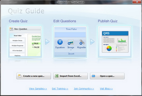 Wondershare QuizCreator - компактное Flash приложение, позволяющее создавать разнообразные тесты с использованием мультимедийных файлов и удобной системой управления тестами для проверки результатов и создания отчетов. В программе есть много новых функций, включая интерфейс в стиле Office 2007, темы шаблонов, возможность включать картинки и уравнения в вопросы и в варианты ответов и многое другое.