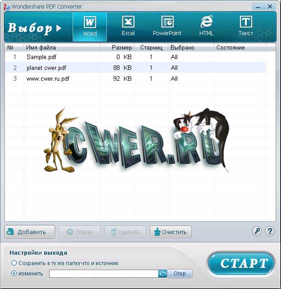 Wondershare PDF Converter - это мощная программа, которая поможет вам конвертировать PDF файлы в Word, PowerPoint презентации, HTML-страницы или текстовые файлы. Программа поддерживает режимы пакетного и частичного преобразования, имеет приятный и дружественный интерфейс.