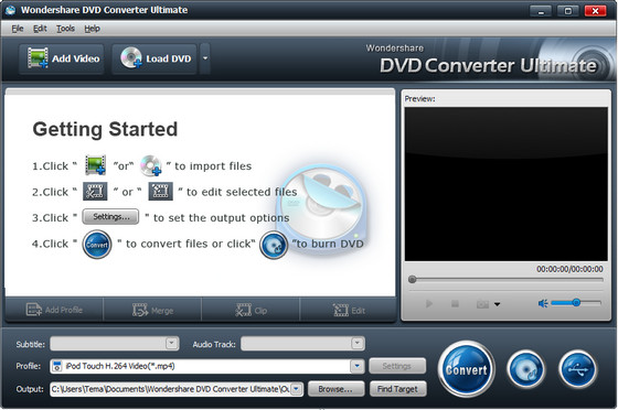 Wondershare DVD Converter Ultimate – многофункциональная программа для конвертирования DVD видео. Вы можете конвертировать как SD, так и HD видео, в любой видео формат, удобного для вашего медиа плеера или телефона включая iPod (Classic, Nano и Touch), iPhone, Apple TV, Zune, PSP, Pocket PC, Creative Zen, Archos и 3GP мобильных телефонов. Также вы можете записывать DVD видео в любой формат, и наслаждаться ими на мобильных устройствах. К тому же, вы можете записывать и редактировать DVD видео, а затем просматривать их на своем DVD плеере.