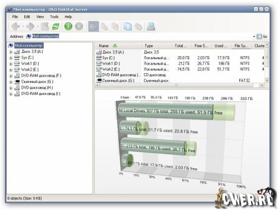 O&O DiskStat – мощное средство для детального анализа использования дискового пространства, отображающее результаты в виде диаграмм. DiskStat идентифицирует и перемещает лишние файлы, освобождая пространство на жестком диске.